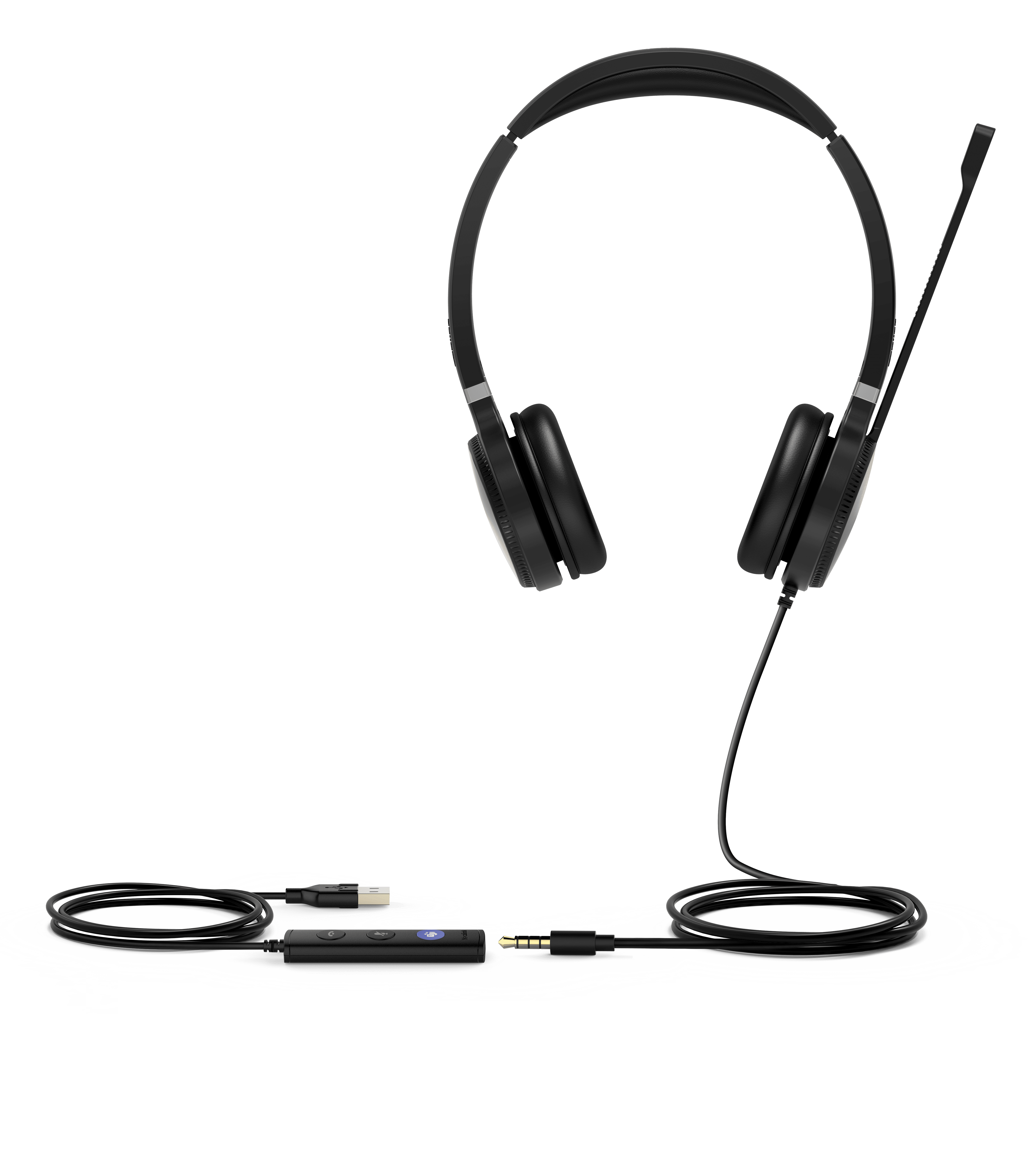 UH36 Dual Teams, UH36 Duo (binaural) 3.5mm and USB wired headset, flexible boom microphone, noise canceling, headband, HD voice, UC& Microsoft Teams.