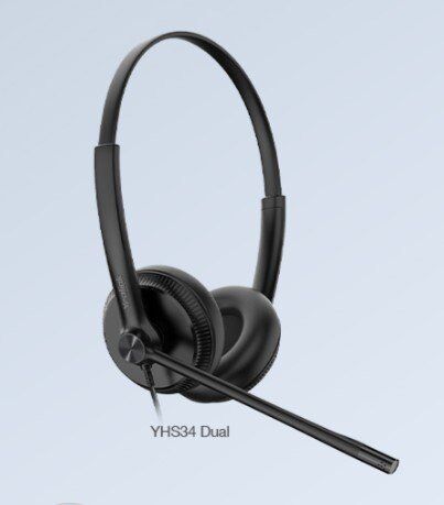 YHS34 Dual, YHS34 Duo (binaural) QD (Quick Disconnect) to RJ9 wired headset, boom microphone, noise canceling, headband, HD voice,.